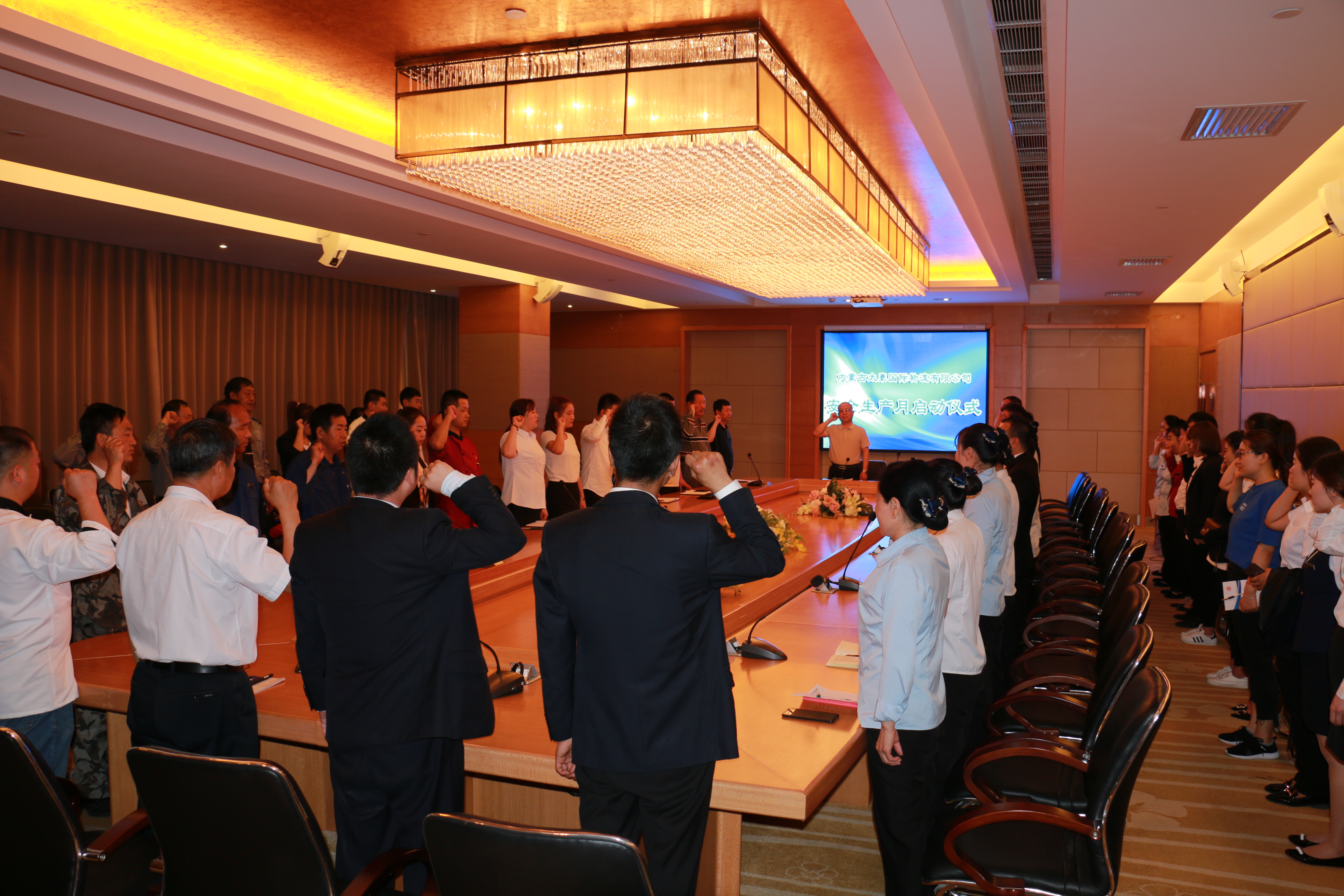 太豪公司全体员工进行安全宣誓:郑重承诺遵守规章制度,遵守劳动纪律,不出事故、不留隐患,为企业、部门、自身的安全负责。