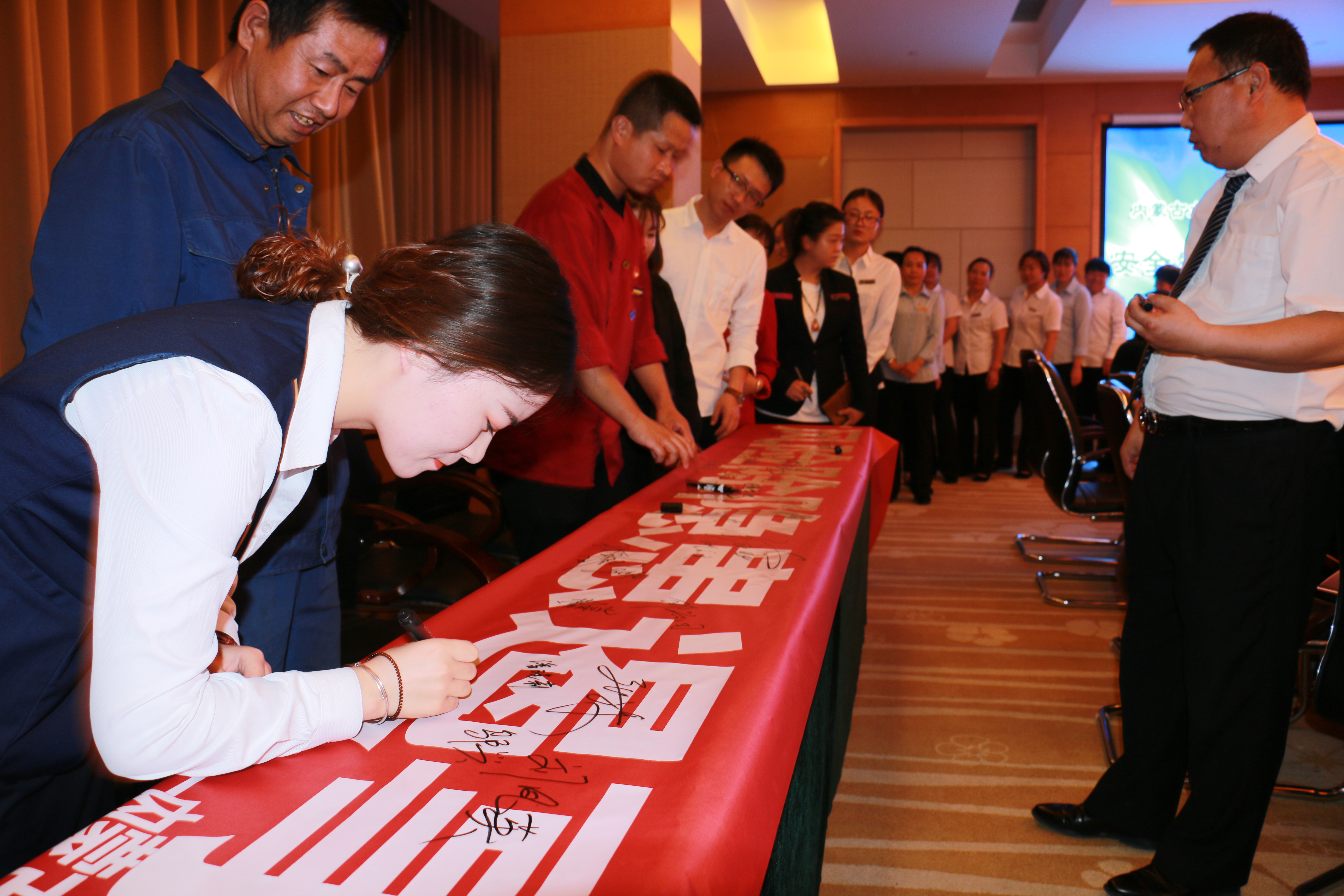 最后,全体员工在“安全生产月”主题横幅上签名并留影,表明了每一位员工对安全生产工作的承诺和决心。