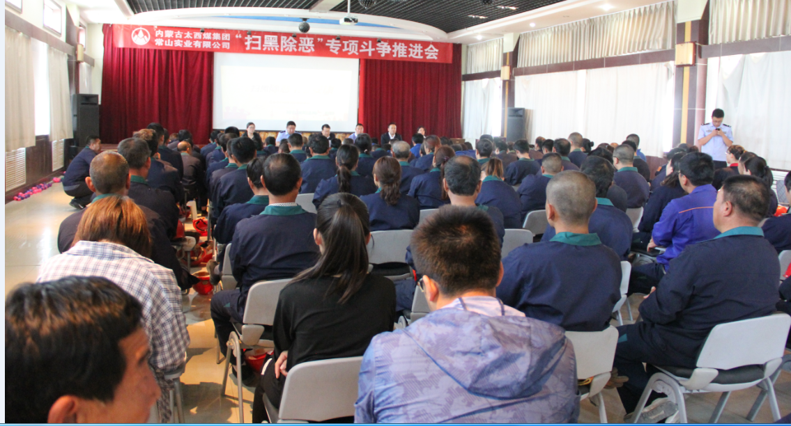 6月3日上午,常山实业公司举办了“扫黑除恶”专项斗争推进会暨专题讲座。阿右旗工信局副局长谢庆明、巴丹吉林镇派出所第三警区警长甘君伟、阿右旗扫黑除恶专项斗争宣讲团老师赵静、公司常务副总经理陶恒文及110多名职工代表参加了推进会,聆听了专题讲座。