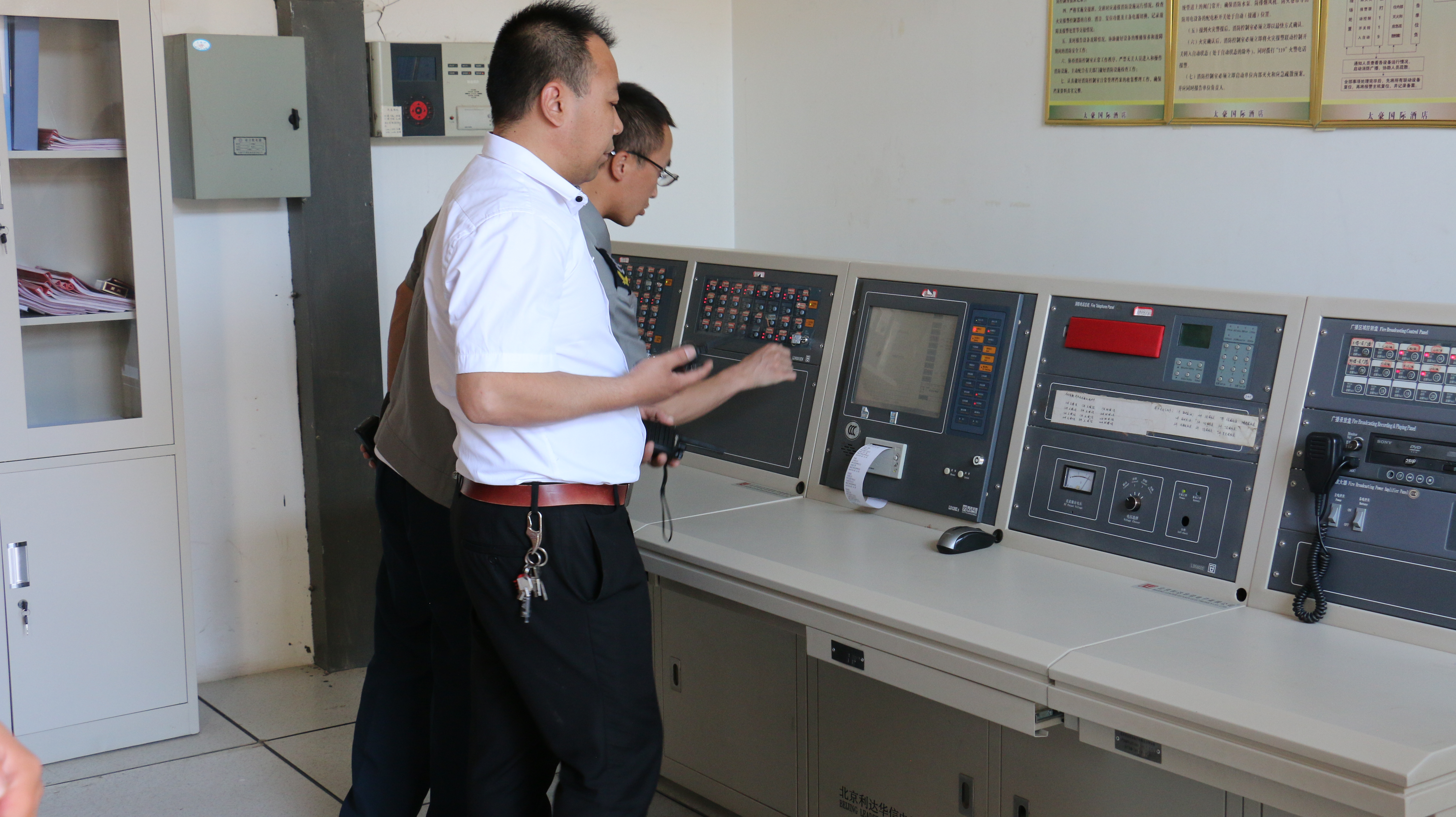 太豪国际酒店总经理胡生君快速赶到消防监控中心坐镇指挥