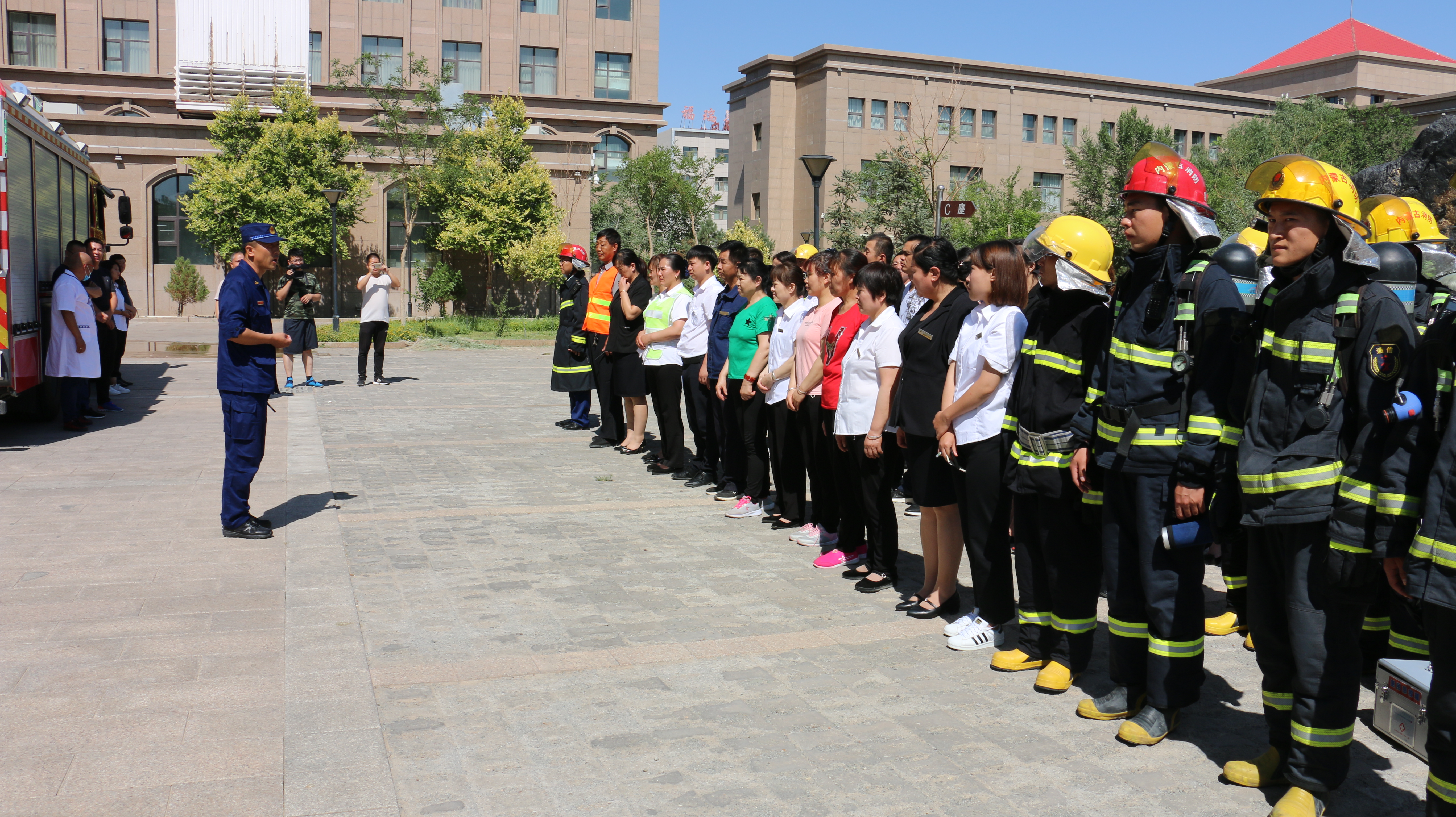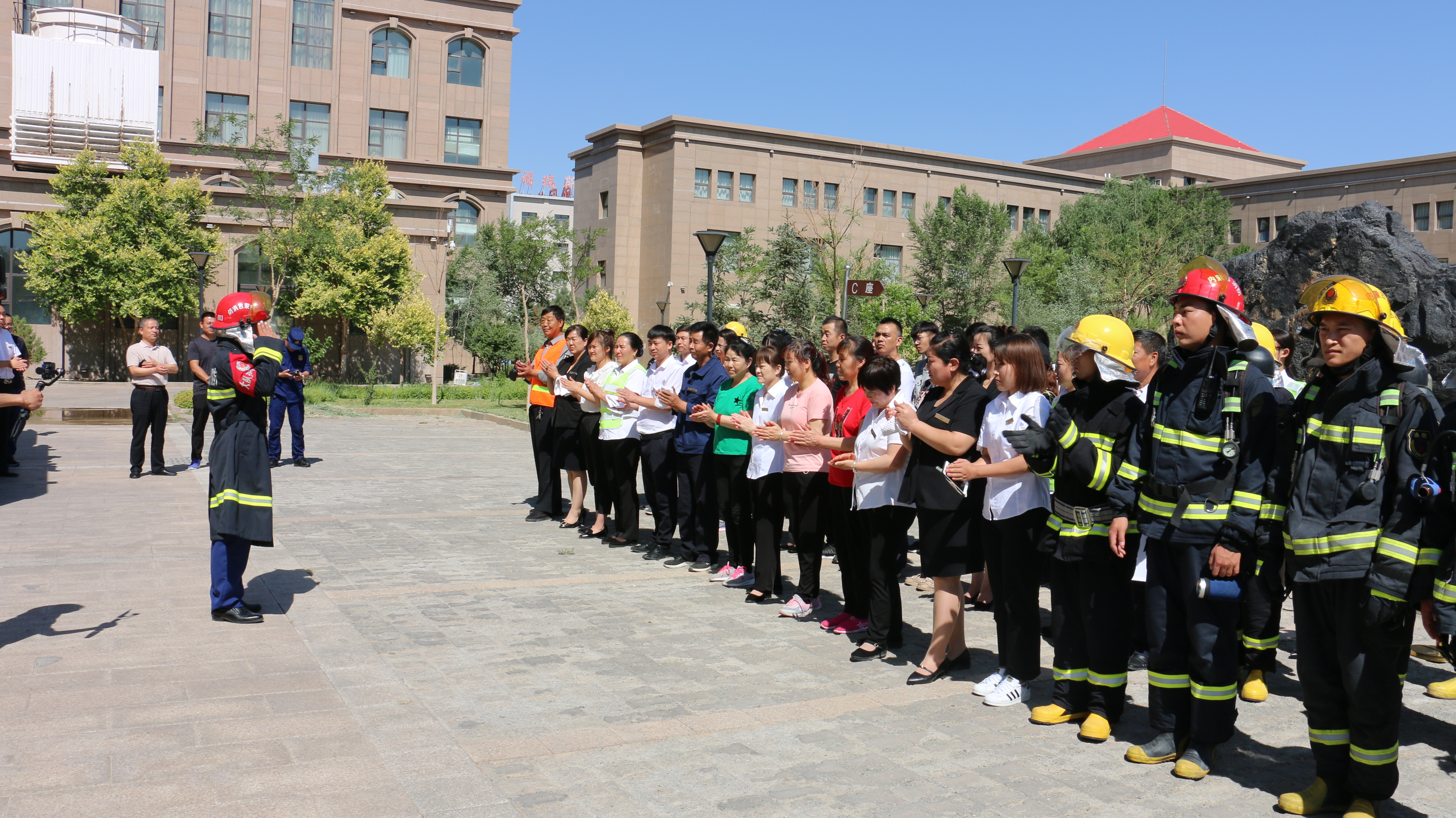 为进一步强化酒店员工消防安全意识,提高酒店与消防、市政、医院等部门联合处置火灾的应变能力,6月底,酒店积极与其他部门沟通协调制定了《综合灭火疏散演练预案》。经过多次预演后,7月5日上午,演练正式开始。太豪国际酒店总经理胡生君、额济纳旗应急管理局石多仁副局长、消防救援大队教导员武洪波到现场指导,消防、市政、旗医院120急救中心工作人员和酒店员工共计60余人参加了演练。