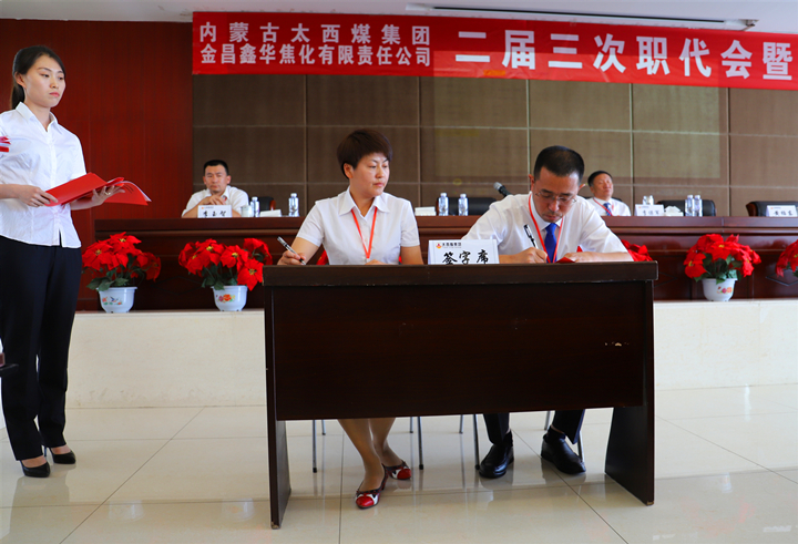 7月12日,金昌鑫华焦化公司二届三次职代会暨工代会在生产调度楼六楼会议厅隆重召开。大会主席团成员李保军、黄绍东、张萍、杨天云、何铭基、聂振军、王书生、李玉智主席台就坐。来自公司各部室、车间35名职工代表和28名列席代表,以及各部室车间部分员工近120人参加会议。大会由公司工会主席张萍主持。