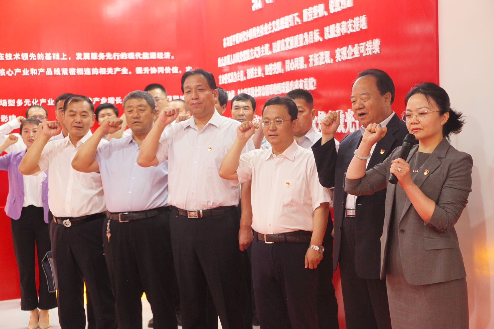 与会人员在讲解员的引领下参观太西煤集团企业发展历史和党建发展成果展,并在宣誓墙前重温入党誓词。