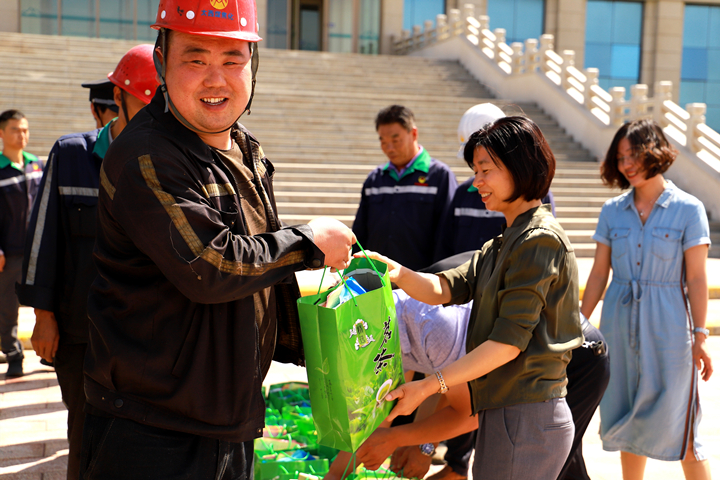 工会主席张萍代表公司领导班子,感谢永昌县委县政府和工会领导的关心,大家将以实际行动战高温、斗酷暑,立足岗位,做好本职工作,以饱满的热情鼓足干劲投入到地方经济建设工作中,为循环经济的发展贡献自己的一份力量。
