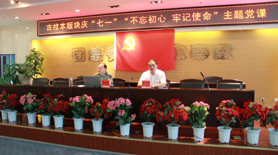 古拉本板块邀请中共阿拉善盟盟委委员、军分区政治委员张学增同志为120余名党员干部职工上了一堂以“不忘初心,为实现强国梦、强军梦、强企梦担当作为”为主题的党课。
