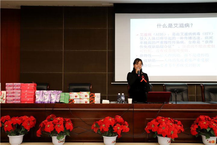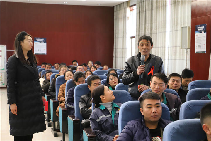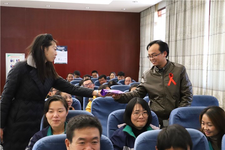 红丝带胸前飘,小小宣传手册内容多。在世界艾滋病日暨性病防治宣传周到来之际,在金昌市总工会、卫健委的大力支持下,11月22日上午,金昌鑫华焦化公司工会邀请金昌市妇幼和计划生育服务中心的副主任医师纪丽君老师做客公司,开展“预防性病艾滋病,健康金昌我行动”科普知识讲座,向公司员工宣传健康生活常识和预防性病艾滋病的基本知识。公司常务副总何铭基,与公司各车间、部室150余人聆听讲座。金昌市疾控中心免费发放了《预防艾滋病科普常识读本》、宣传贴画等科普资料,介绍了科普及预防的APP平台。