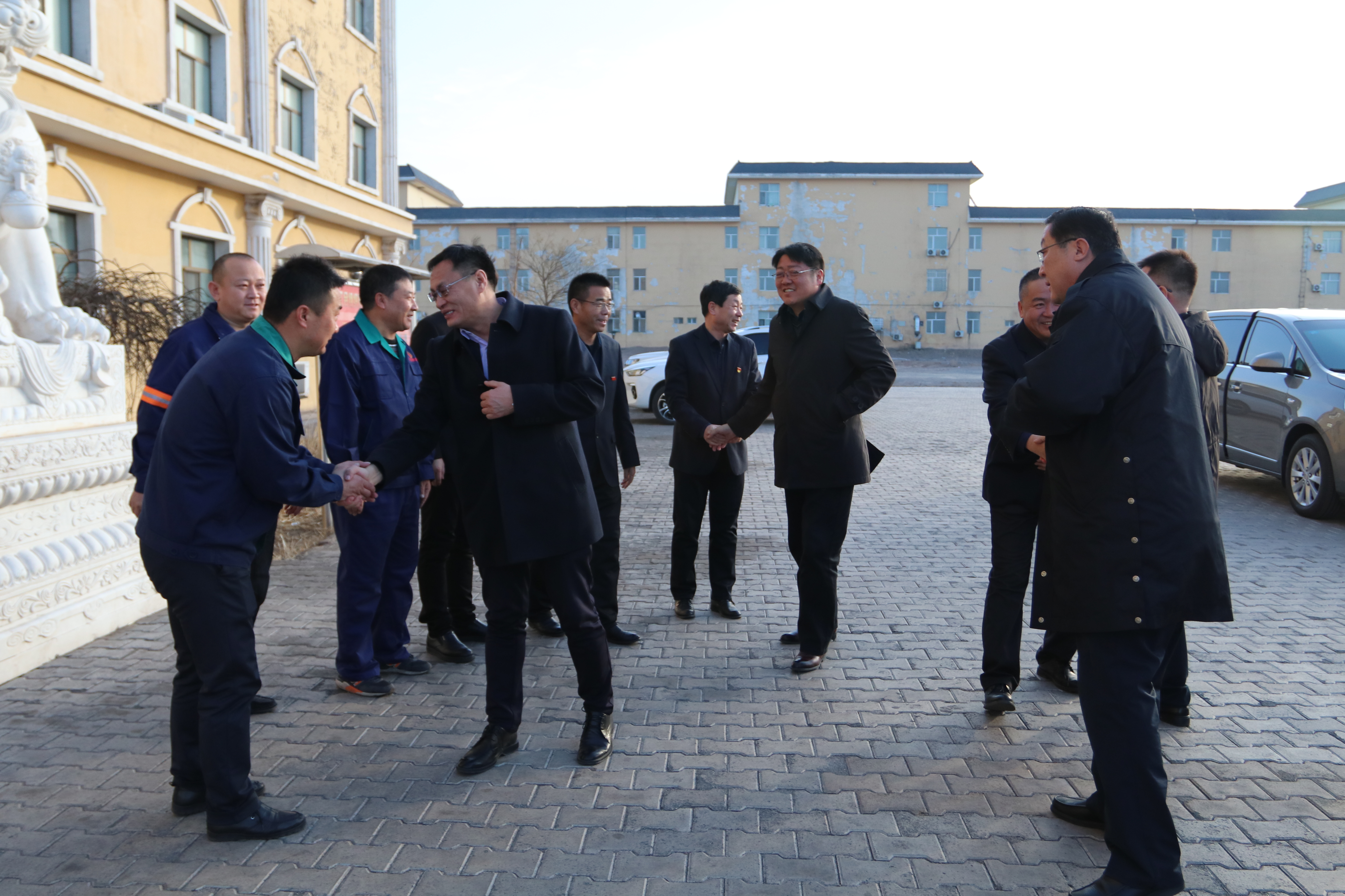 2020年1月4日上午,自治区总工会副主席包铁强在盟工会党组书记、常务副主席莫日根、盟工会服务中心副主任周志斌、策克口岸经济开发区党委书记牧仁等领导的陪同下深入太豪公司开展工会主席标准化考核及慰问活动。