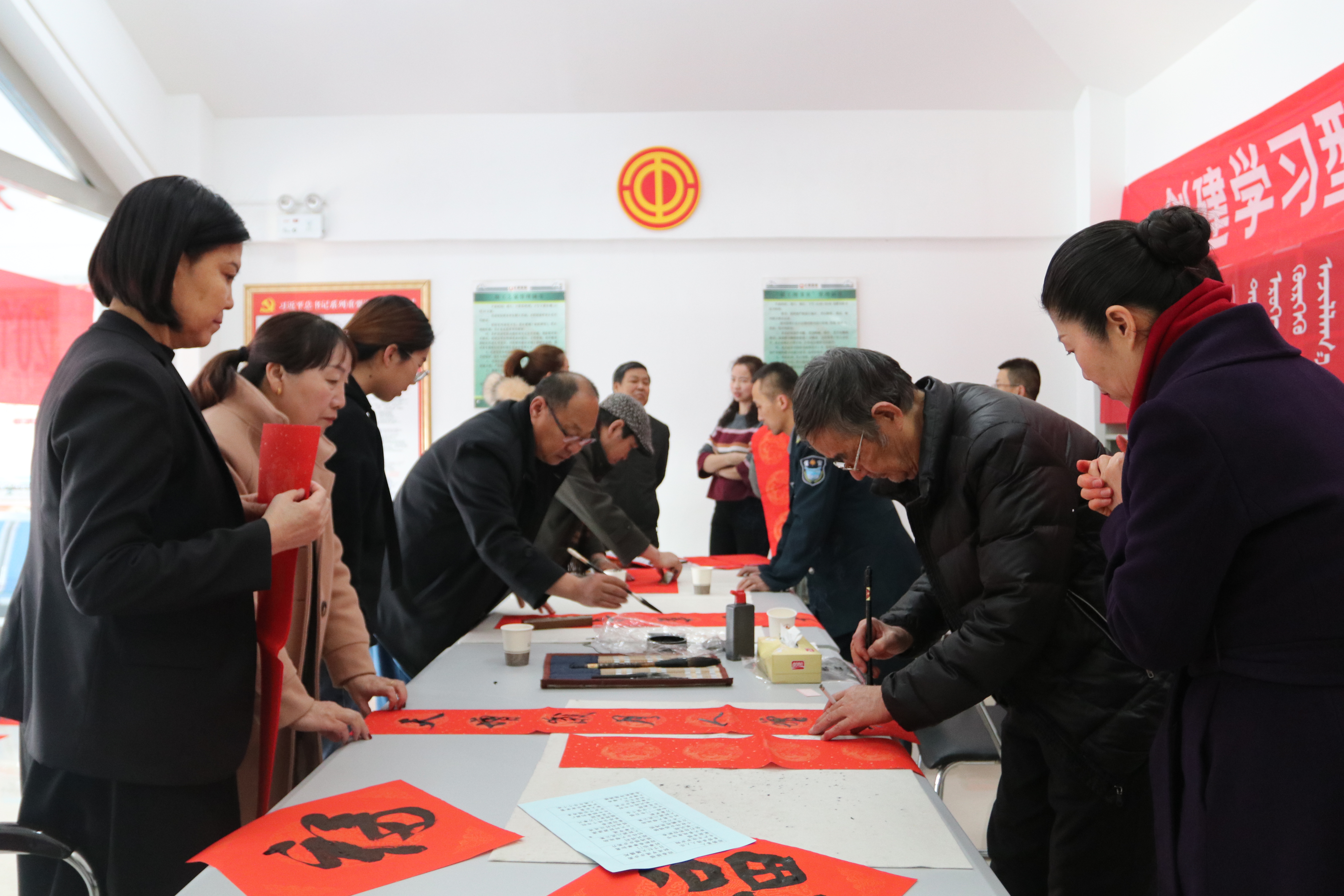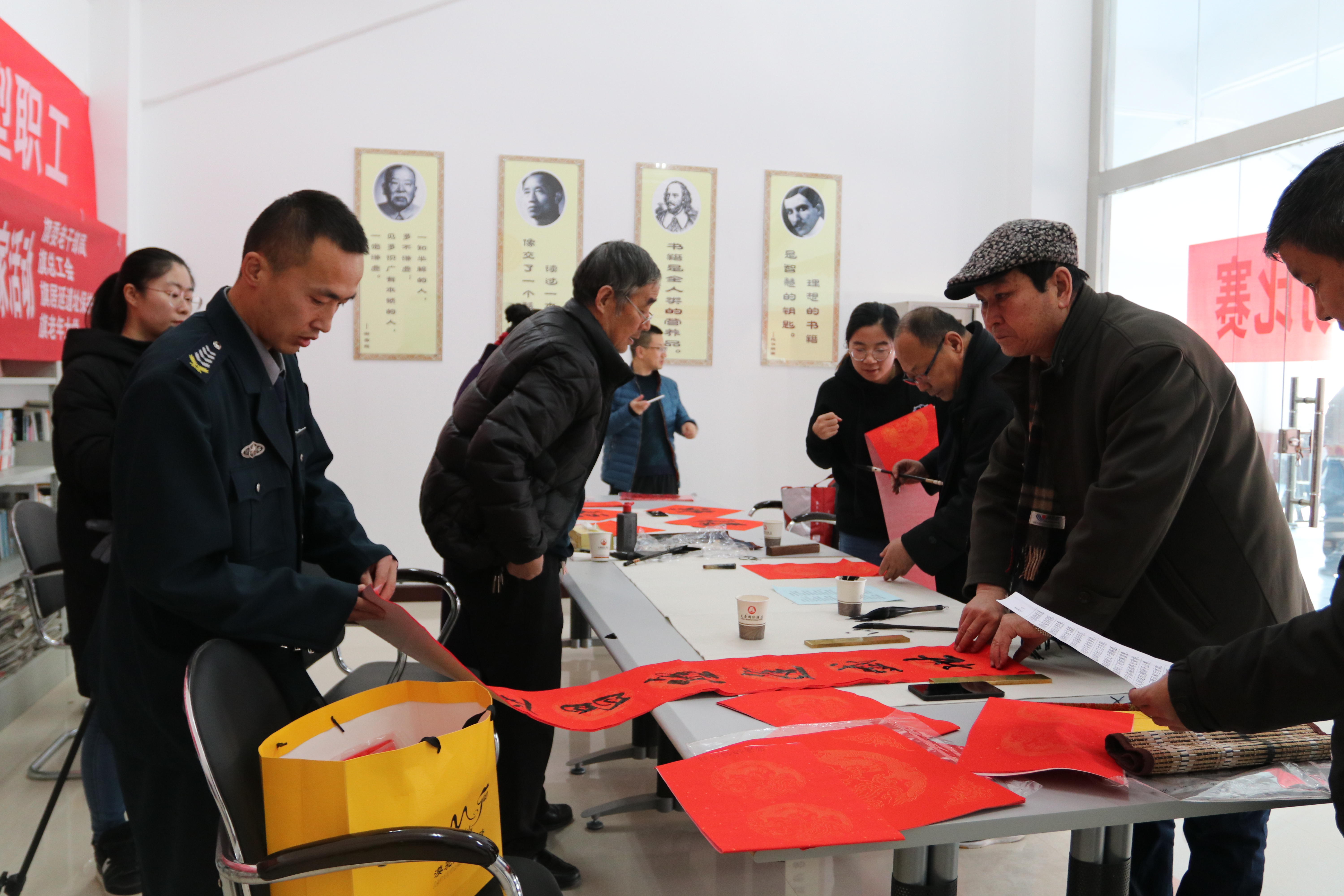 新春佳节即将来临,为增添过年的喜庆氛围、丰富公司工会会员文化内涵、进一步传承传统文化。2020年1月16日,太豪公司工会委员会特邀2020年额济纳旗“我们的中国梦-文化进万家”迎新春、送春联惠民活动一行书法家到公司开展“写对联 送祝福 迎新春”活动。共为职工手写春联、福字100余份,在传递浓浓年味的同时,也给公司职工送去了新春的祝福。