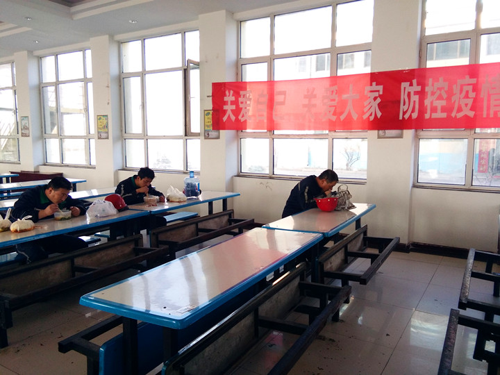 二是所有就餐人员在排队等待打饭时,必须戴口罩,员工之间必须有“1米”距离。三是职能部室、车间行政人员,自带餐具,分散用餐。按时为返程回厂隔离的员工送餐,确保观察人员就餐安全。四是实行各车间、部室错峰打饭,生产系统员工由于工作岗位特殊要求不能在工作岗位就餐的,食堂监管员监督防止聚集、面对面就餐。