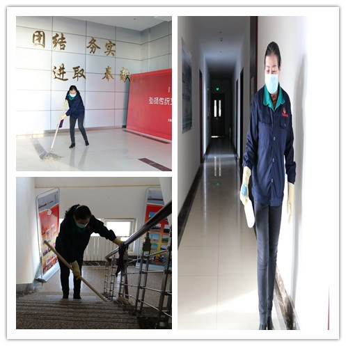 2月8日,太豪公司保洁员包洁给领导打电话说:“我是公司保洁员,在疫情期间,也做不了什么大事,我想在大伙上班之前做好单位公共区域的卫生清洁和消毒工作,保证大伙的安全,还有什么需要我做的就请领导提前给我安排工作吧!”,她是这样说的也是这样做的。因为疫情的发生,即使新年假期已经结束,但公司的员工基本都在外地无法回来,家在额济纳旗达来呼布镇的包洁就主动承担起了公司疫情防控的一些基本工作。她早早就到公司忙碌起来,给公司办公楼的公共区域消毒,虽然只是简单的工作,可每天坚持下来却也没那么容易,包洁却从未抱怨过一句,只是每天重复着同样的动作,用自己的微薄之力保护着大家的健康安全。