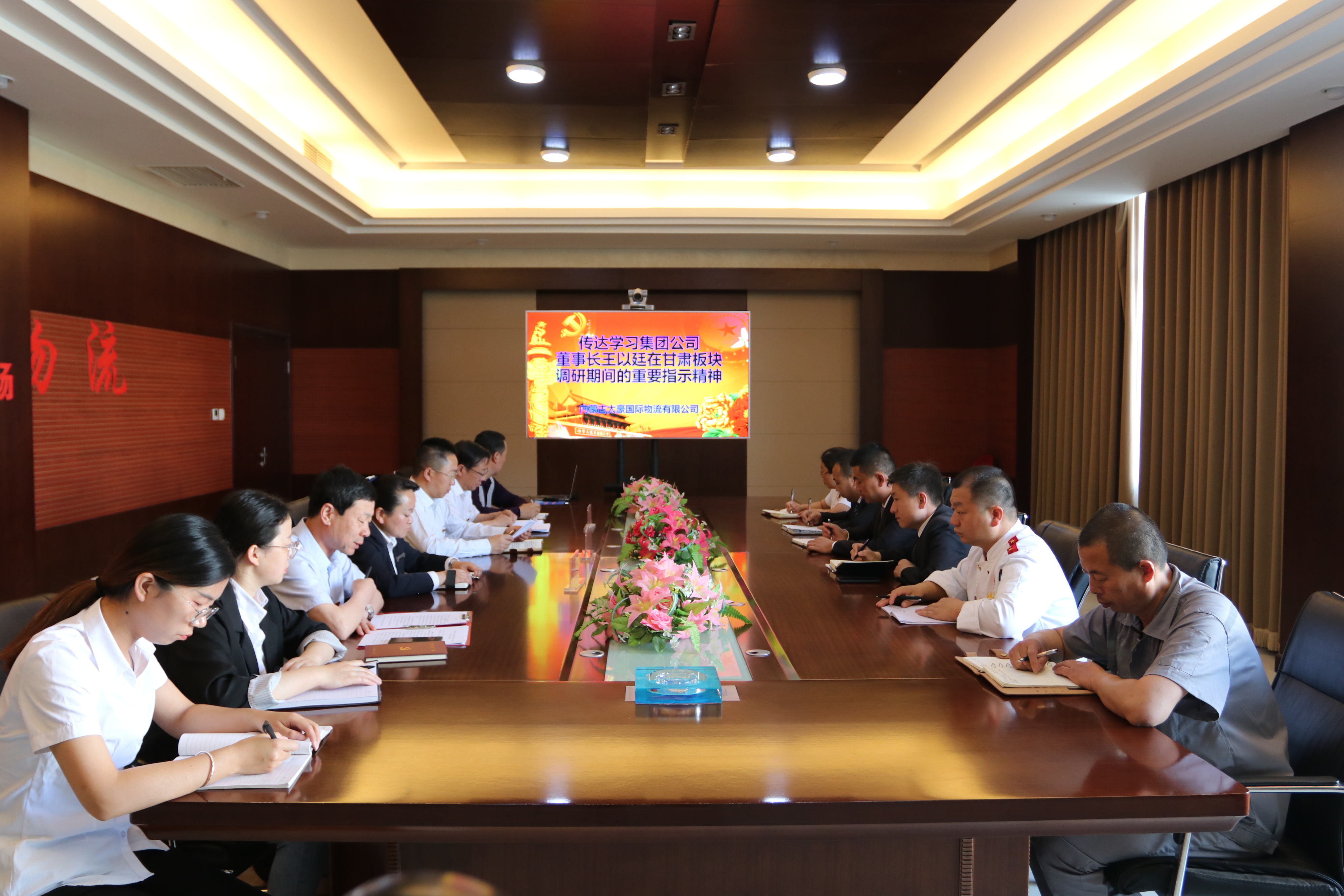 4月20日,太豪公司收到集团公司关于认真抓好董事长王以廷在甘肃板块调研期间重要指示精神传达学习的通知后,及时组织物流和酒店全体管理人员进行了传达学习和领悟。