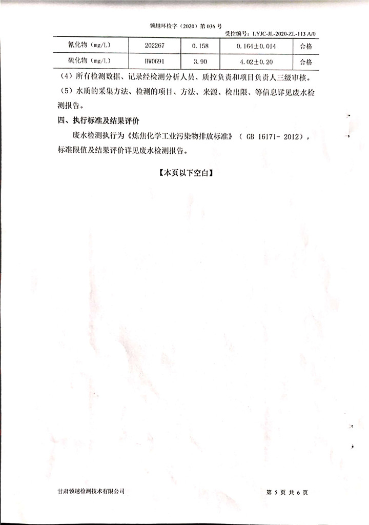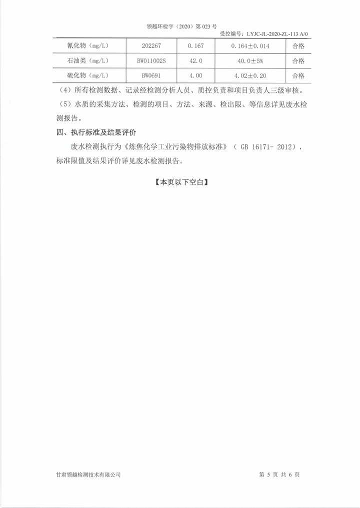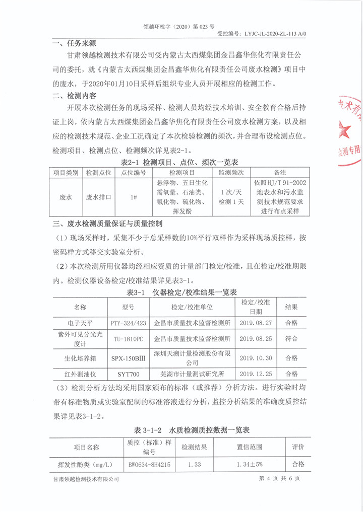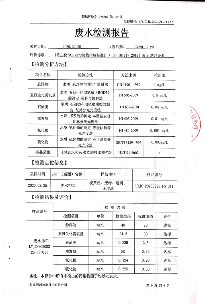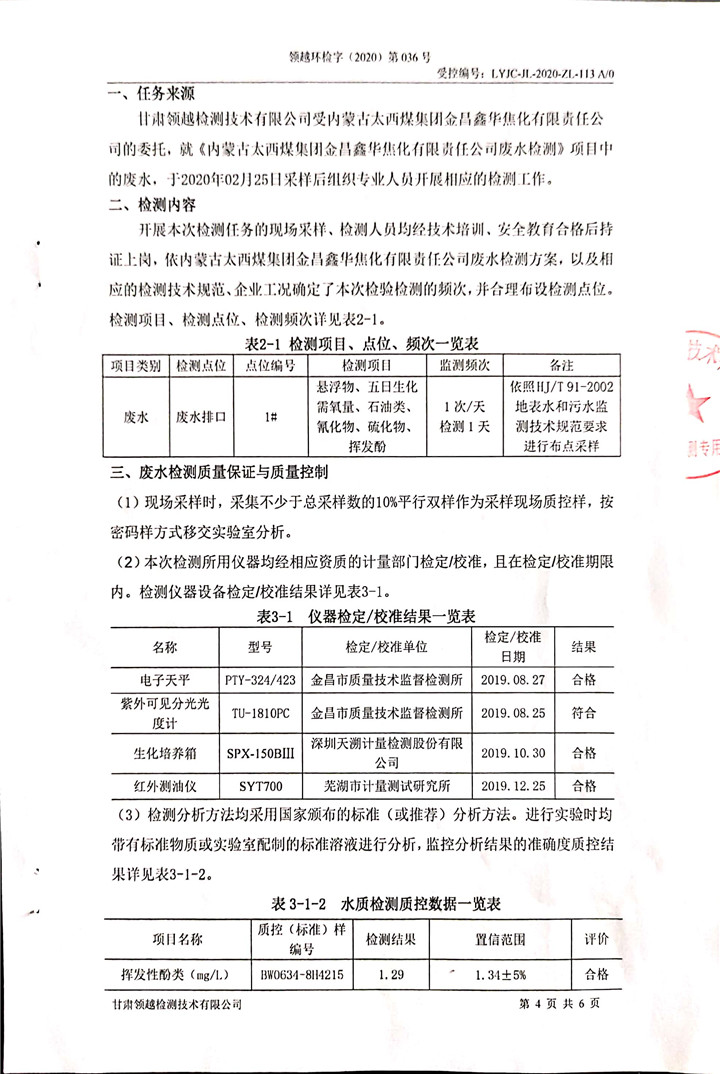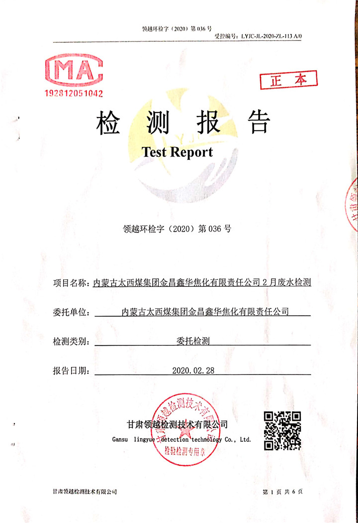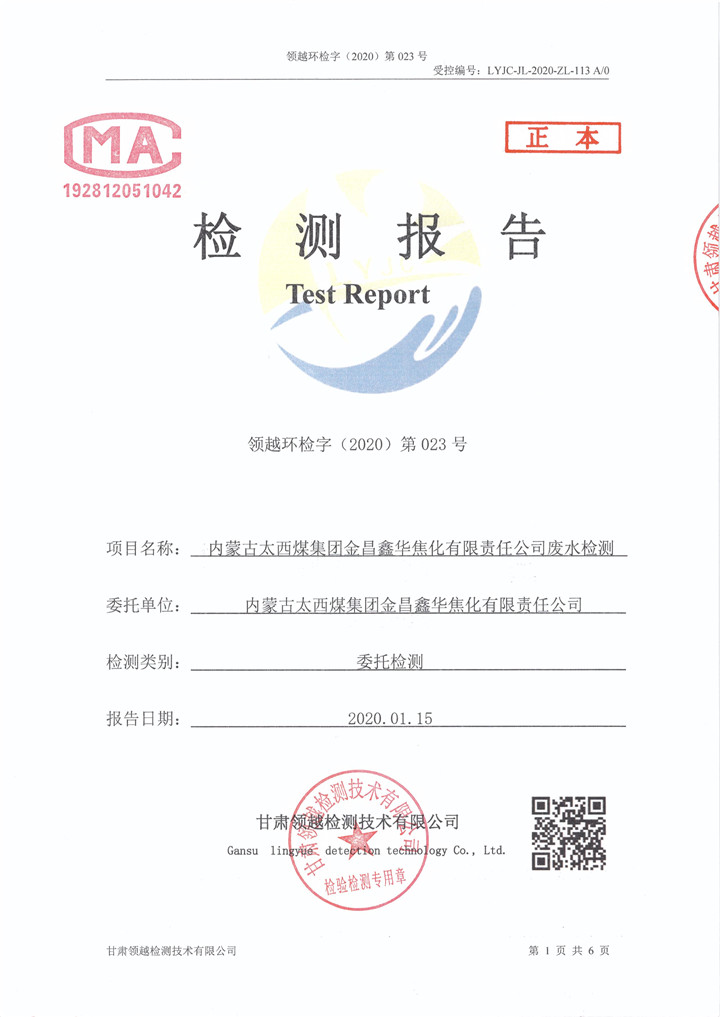 2020年金昌鑫华焦化1月2月水检测报告公示