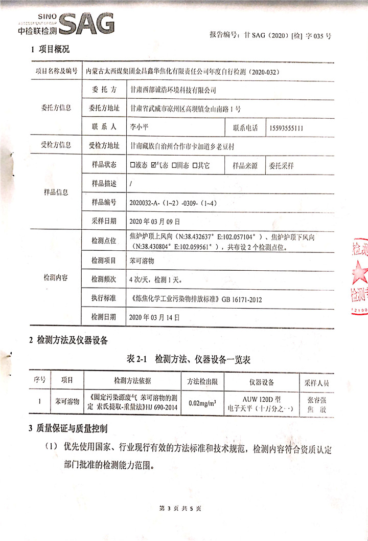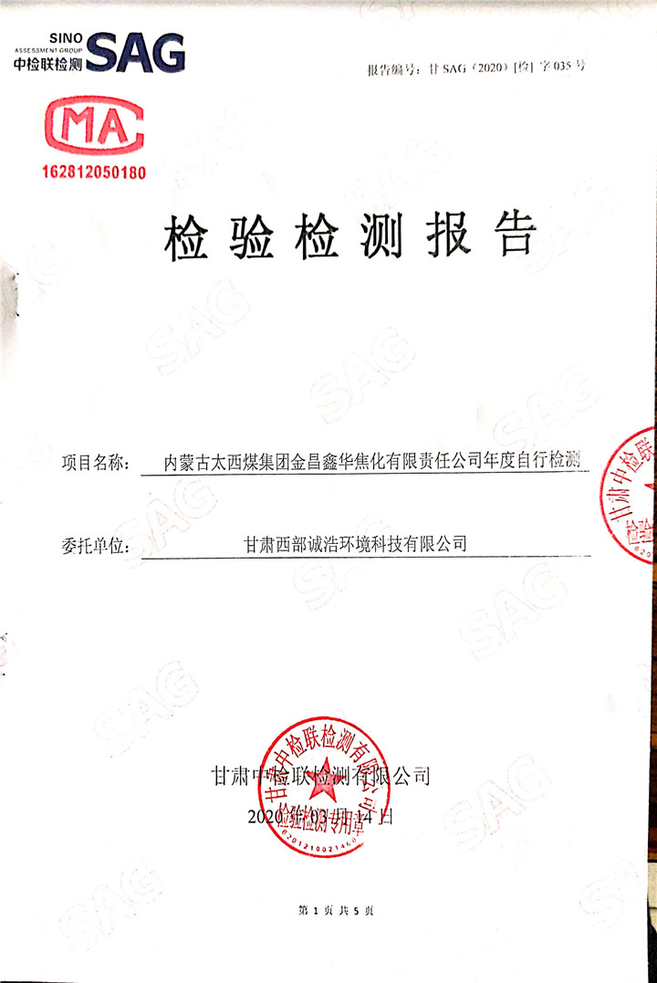 2020年金昌鑫华焦化公司一季度自测报告公示