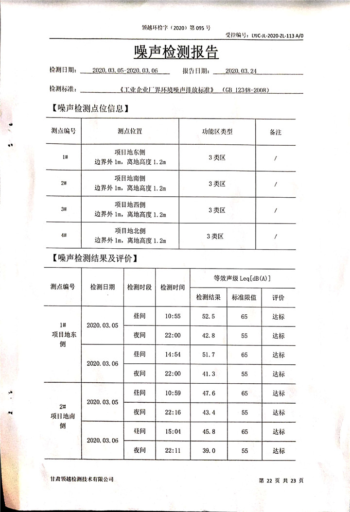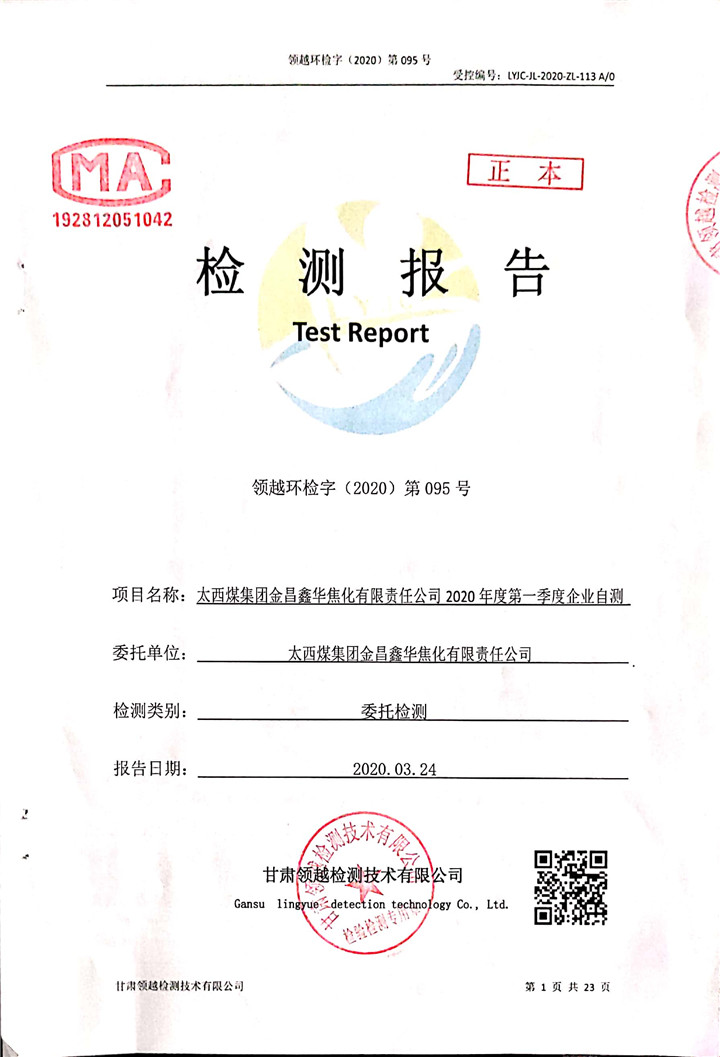 2020年金昌鑫华焦化公司一季度自测报告公示