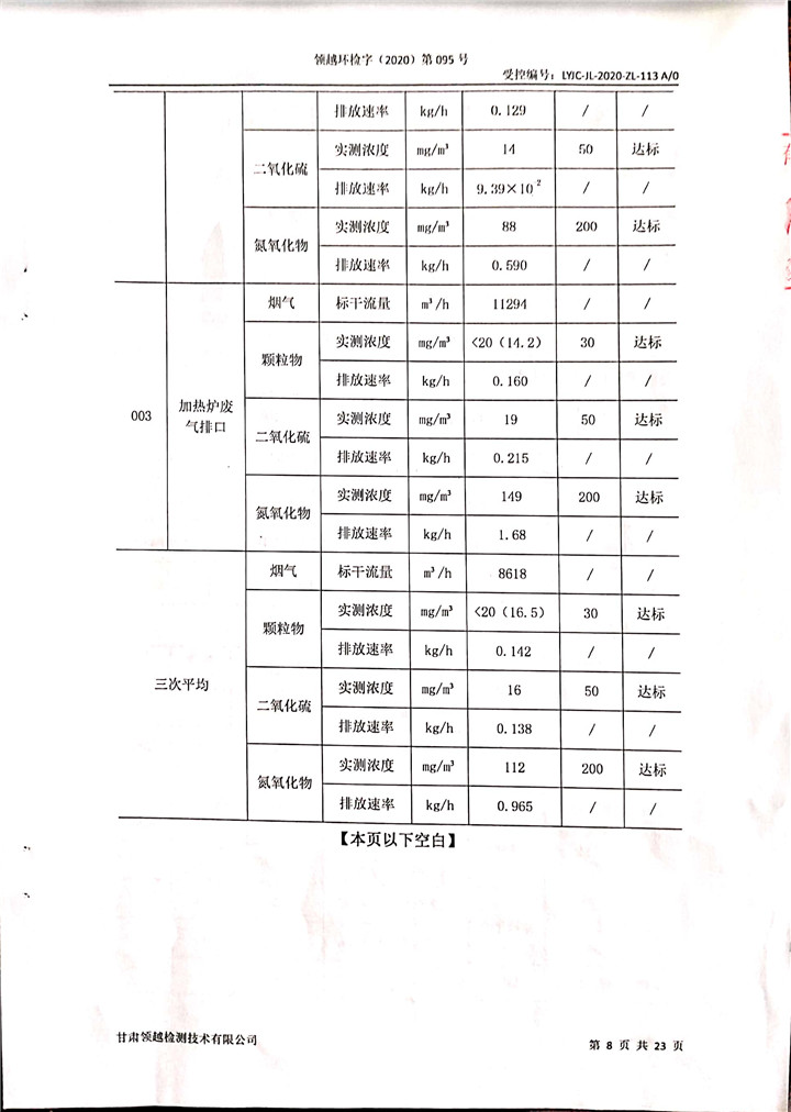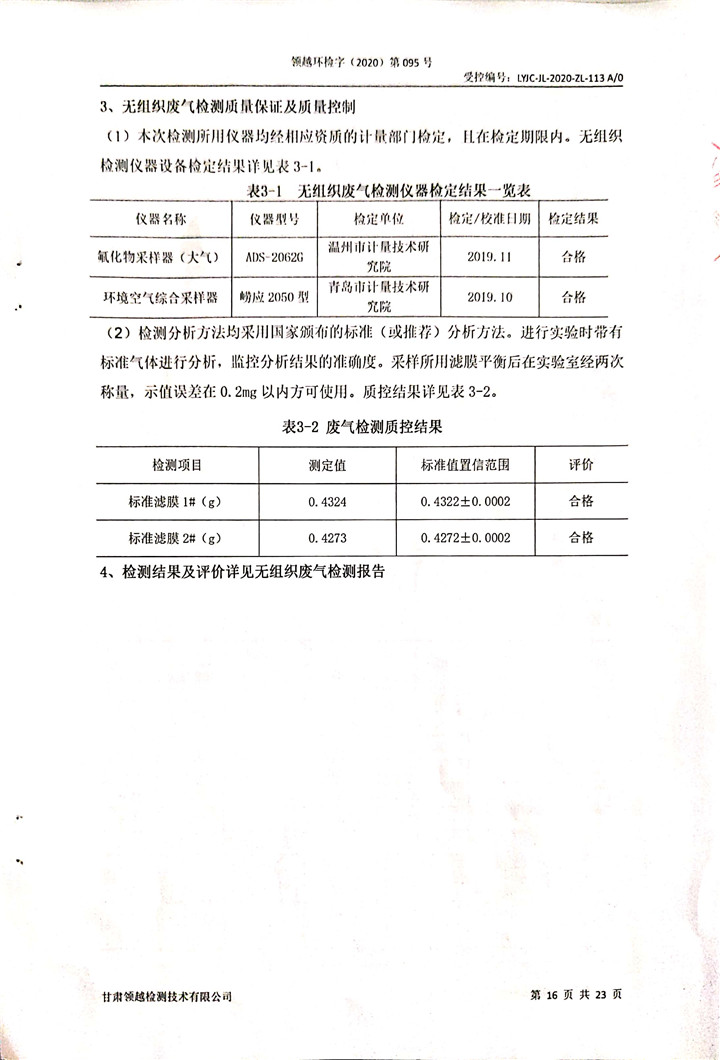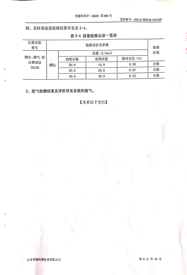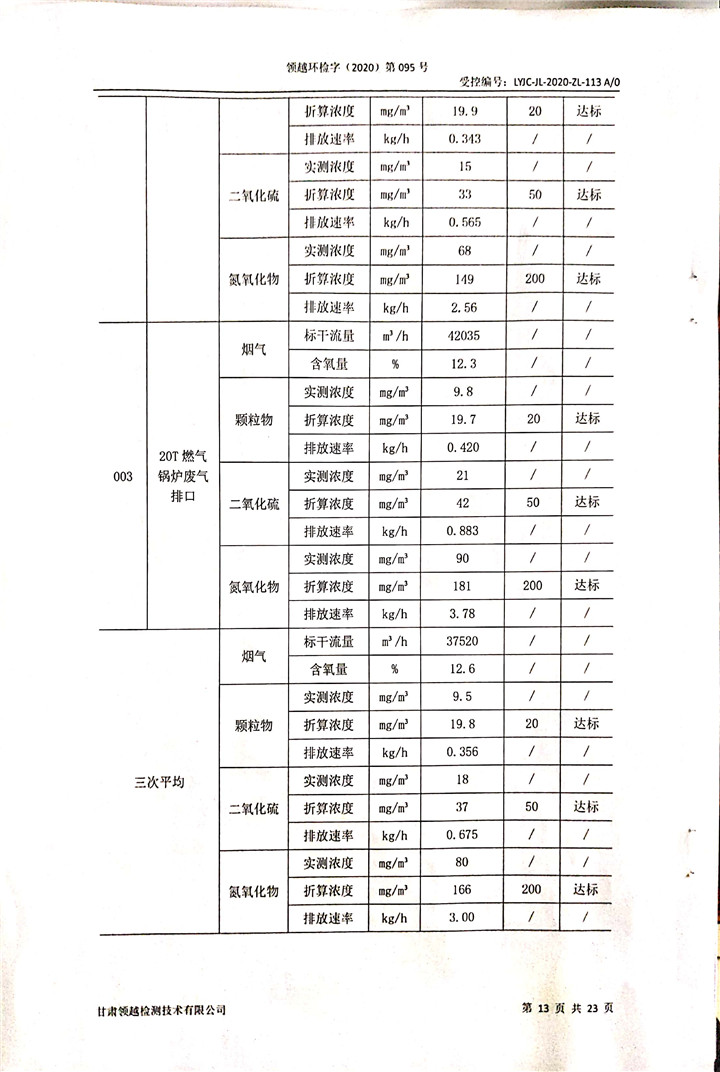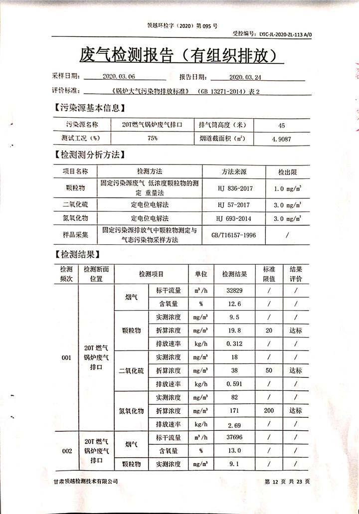 2020年金昌鑫华焦化一季度炉顶废气检测报告公示