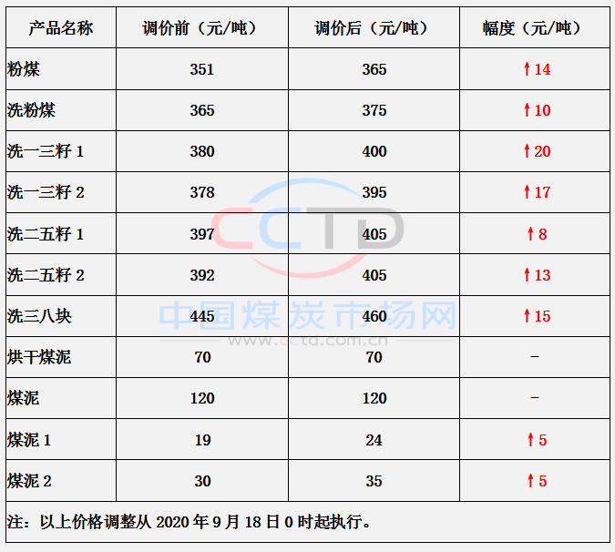 内蒙古东博煤矿9月18日上调部分煤价5-20元/吨
