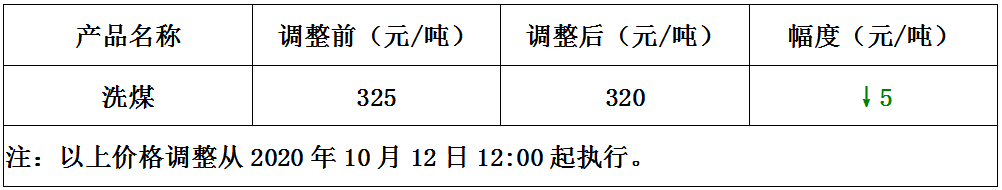 内蒙古铁煤东新公司10月12日下调洗沫煤价格5元…