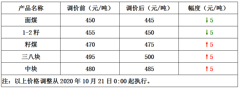 榆林石岩沟煤矿10月21日调整煤炭价格-5~5元/吨