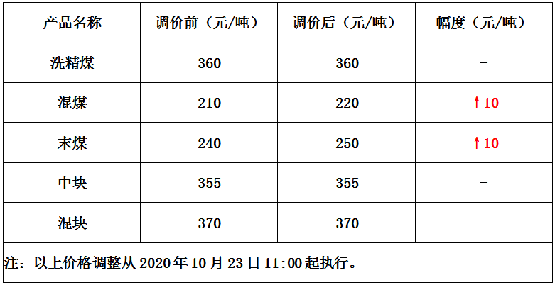内蒙古高家梁煤矿10月23日上调部分煤价10元/吨