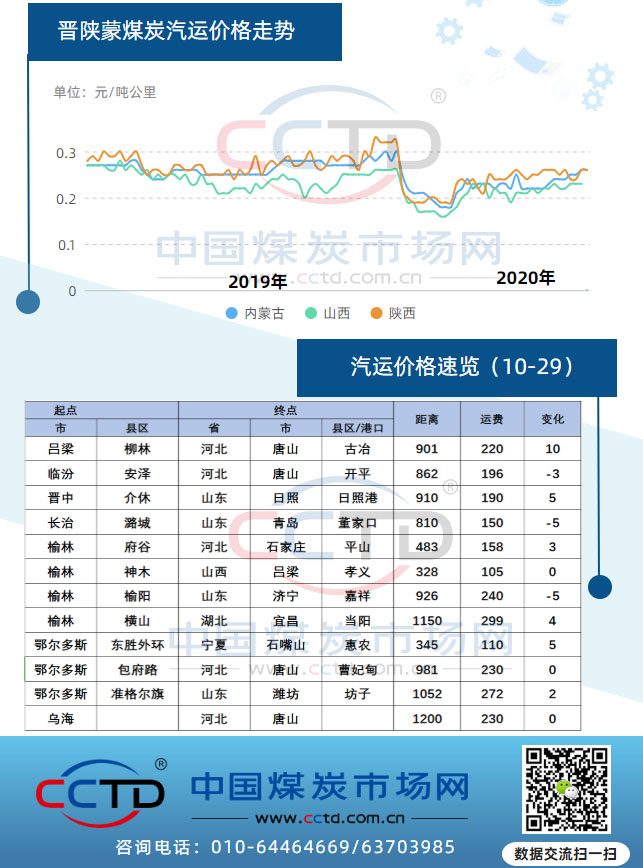 图:晋陕蒙煤炭汽运价格速览(20201029)