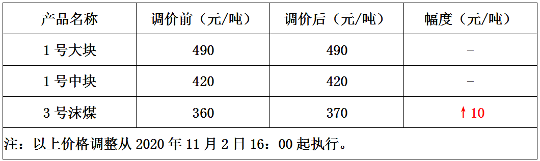 内蒙古汇能宝平湾煤矿11月2日上调3号沫煤价格10元/吨