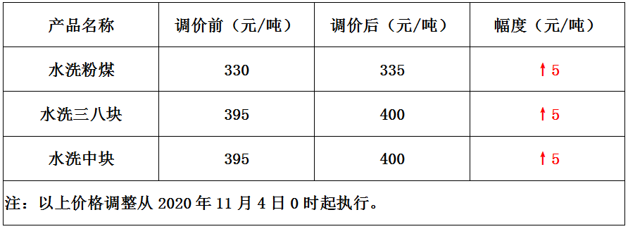 内蒙古长滩煤矿11月4日上调煤价5元/吨