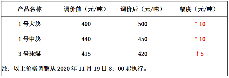 内蒙古汇能宝平湾煤矿11月19日上调煤价5-10元/吨