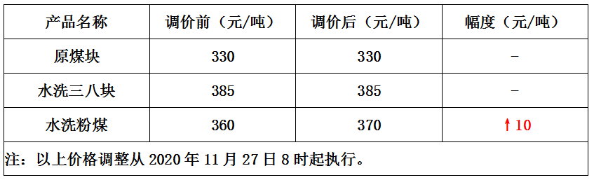 内蒙古碓臼沟煤矿11月27日上调水洗粉煤价格10元/吨