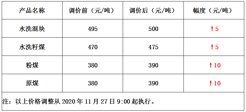 内蒙古马泰壕煤矿11月27日上调煤价5-10元/吨