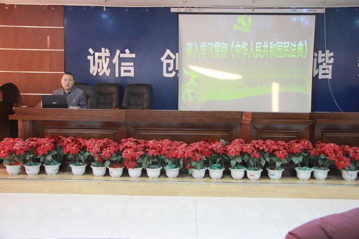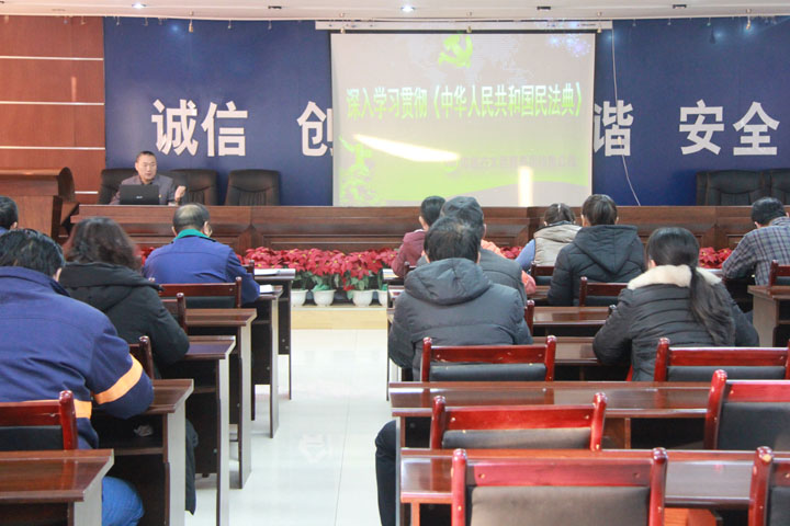 2020年12月4日,销售公司举办中华人民共和国民法典讲座,全体员工、各工队负责人近30人参加,副经理刘瑶德做了总结。
