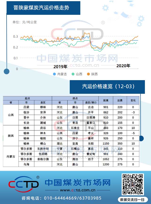 图:晋陕蒙煤炭汽运价格速览(20201203)
