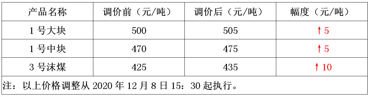 内蒙古碓臼沟煤矿12月8日上调煤炭价格10-15元/吨