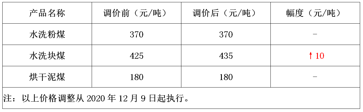 内蒙古罐子沟煤矿12月9日上调水洗块煤10元/吨