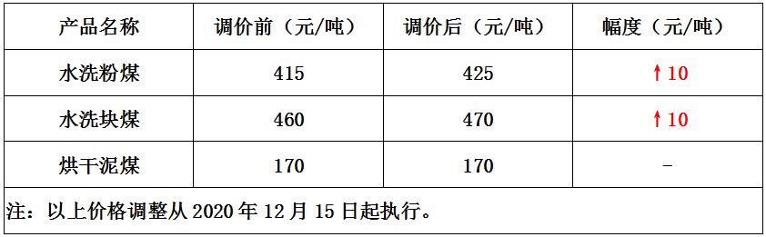 内蒙古罐子沟煤矿12月15日上调部分煤价10元/吨