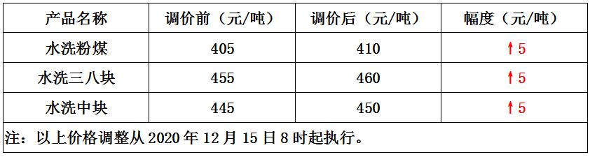 内蒙古长滩煤矿12月15日上调煤价5元/吨