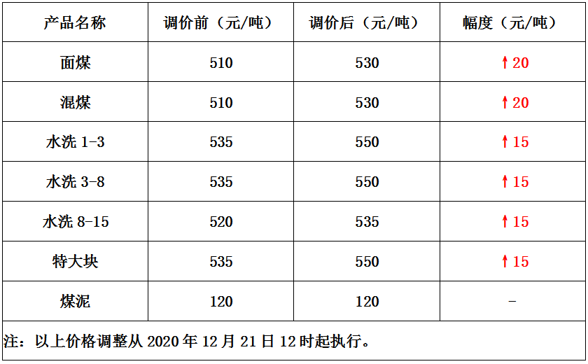 榆林大梁湾煤矿12月21日上调煤炭价格15-20元/吨
