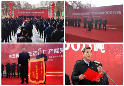 平煤股份田庄选煤厂于12月23日19时19分,全年入洗原煤突破900万吨,再次创历史最高纪录。12月25日上午,中国平煤神马集团祝贺我厂产能突破900万吨仪式在党建广场隆重举行。12月25日上午,集团党委常委、副总经理张建国,集团党委常委、工会主席张金常,集团相关处室负责人,厂领导班子以及近300名干部职工代表参加了庆祝仪式。