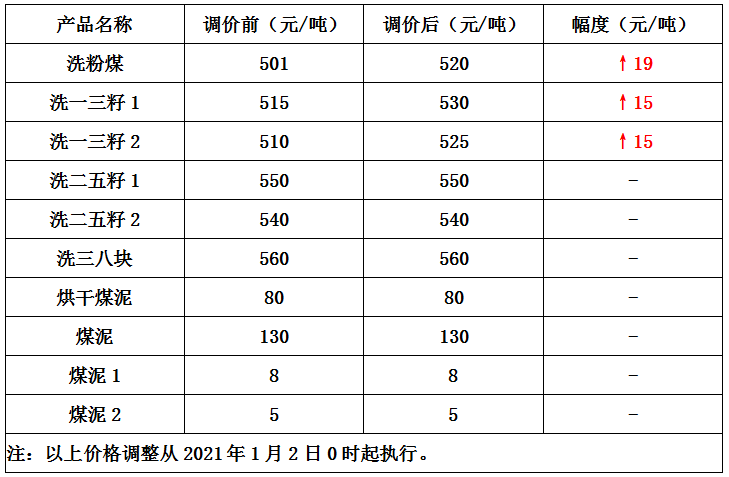 内蒙古罐子沟煤矿12月31日上调部分煤价10元/吨