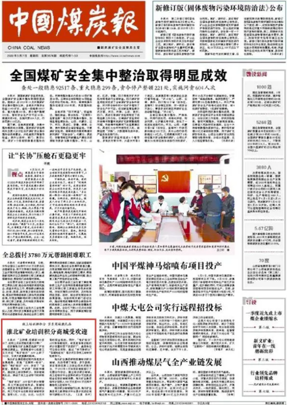 2020年5月,淮北矿业集团拓展延伸“党管培训”工作体系,自主开发建设的手机客户端“淮矿培训积分商城”正式上线运行,打通了员工培训的“最后一公里”。淮北矿业集团每年计划投入300万元至400万元用于激励员工在线学习。新冠肺炎疫情防控期间,淮北矿业集团发挥“网络云端”优势,变线下培训为线上学习,助力企业复工复产有序开展。
