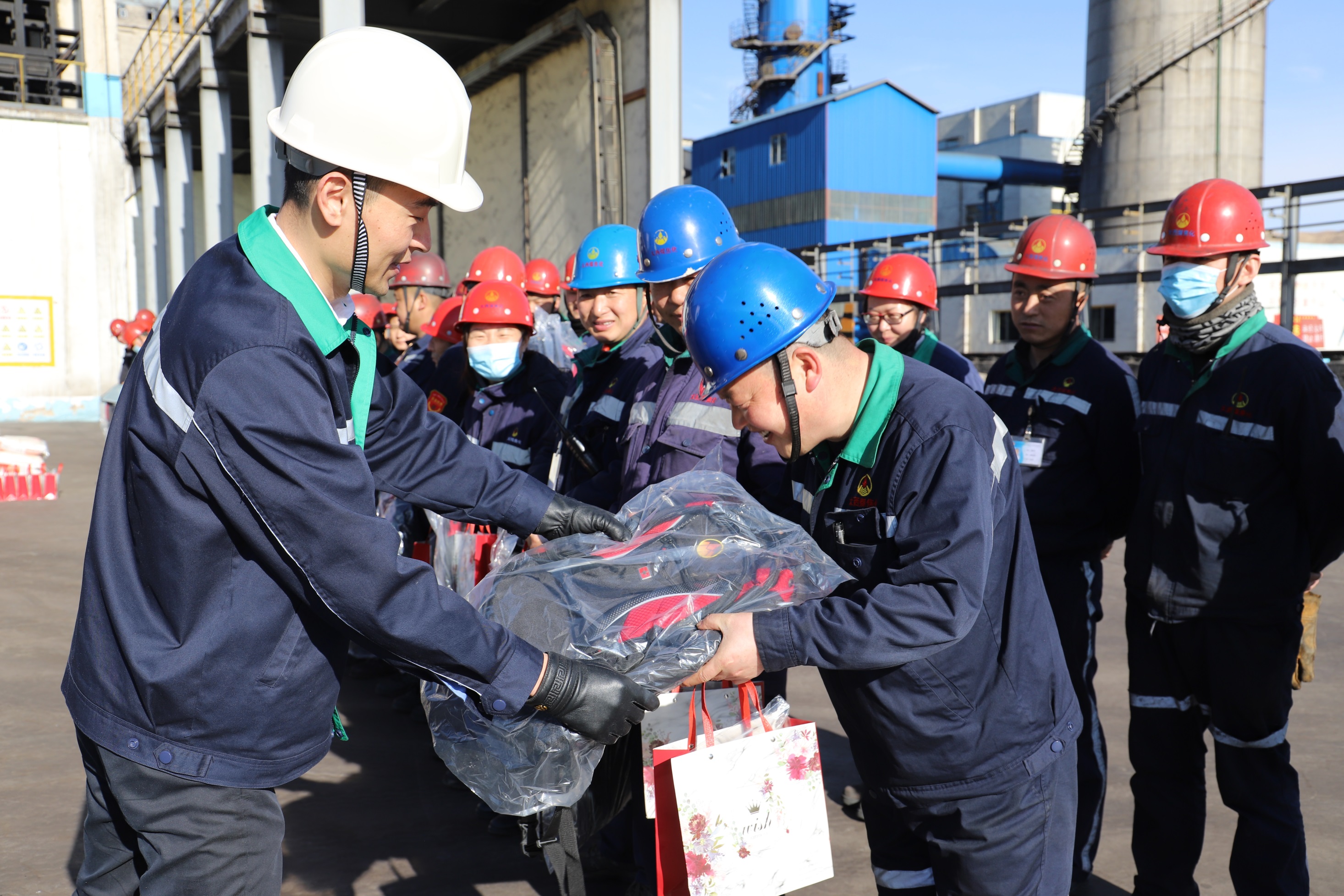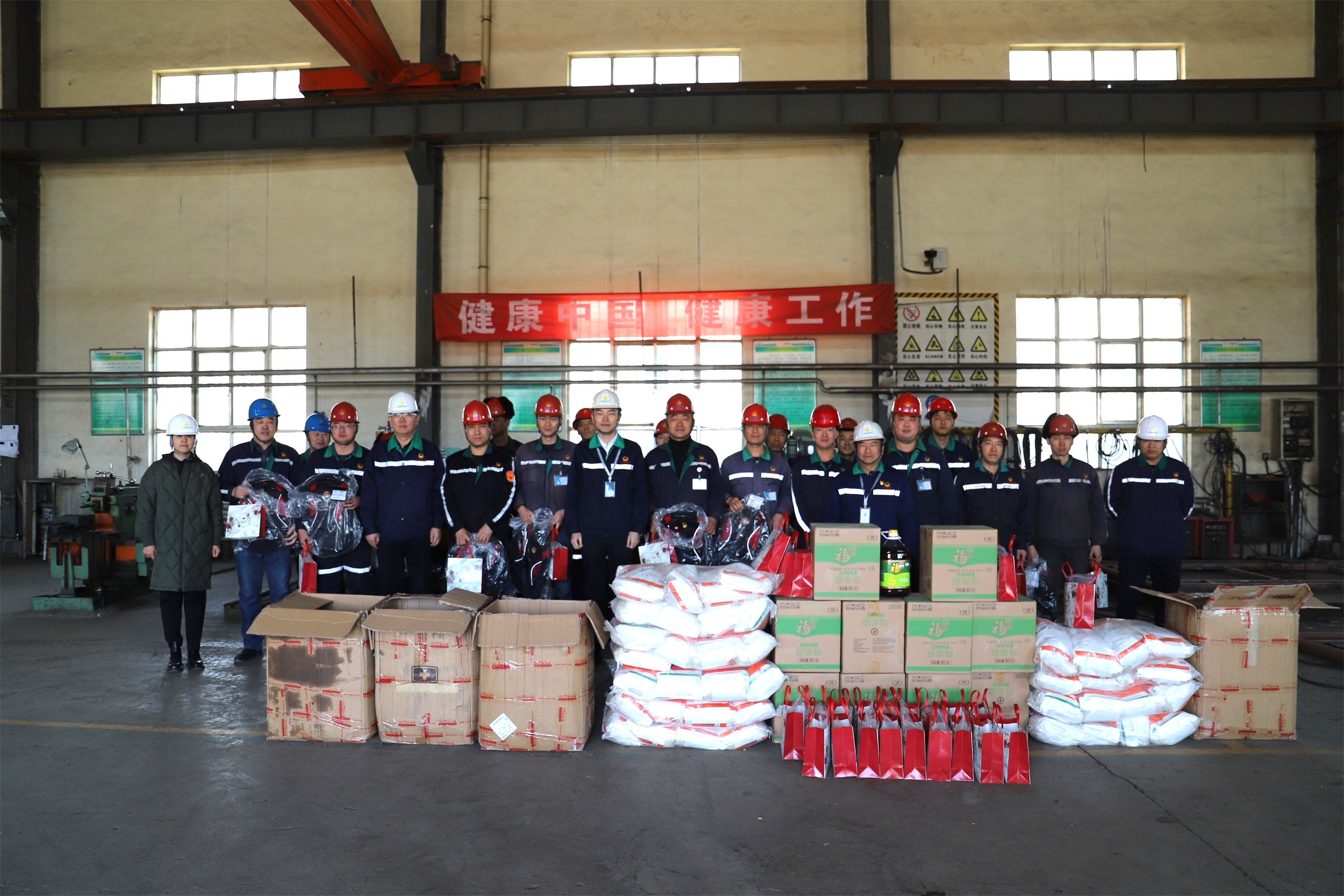 岁寒情深送温暖,心系一线暖人心。此次慰问,公司精心准备了、清油、大米、高档花糖、双肩包等新春“大礼包”,慰问组一行走进炼焦、化产、机修、电仪、储运等车间,将企业的关心关爱传递到生产一线岗位员工。每到一个车间,公司领导都逐一将沉甸甸的“大礼包”福利递到员工手中,把祝福和希望送个每一位员工,并勉励大家一定要坚守岗位,安全生产,鼓励大家接续努力,做好本职工作,相信企业会越来越好。