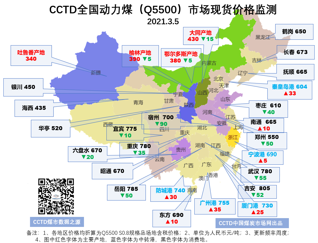 CCTD全国动力煤市场现货价格监测(20210305)