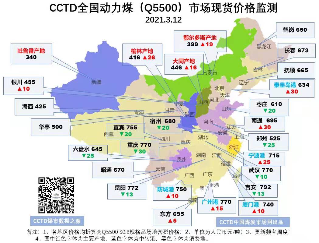CCTD全国动力煤市场现货价格监测(20210312)