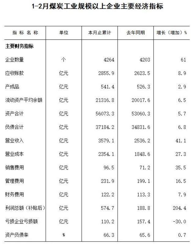 2021年1-2月煤炭行业主要经济指标发布