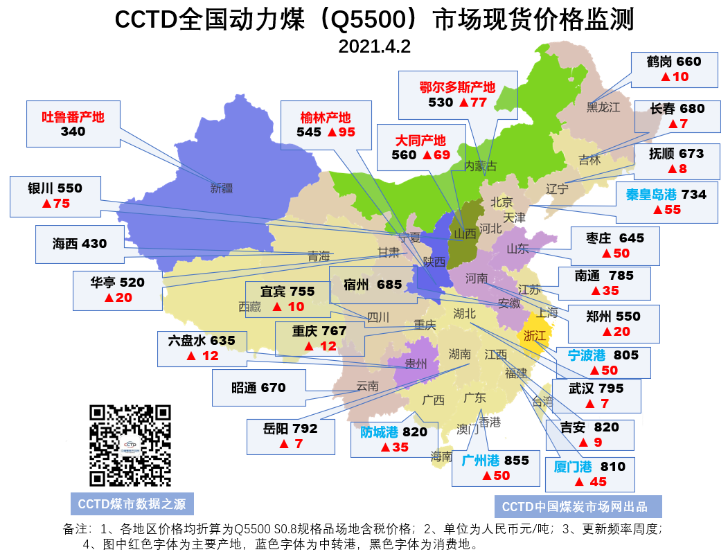 CCTD全国动力煤市场现货价格监测(20210402)