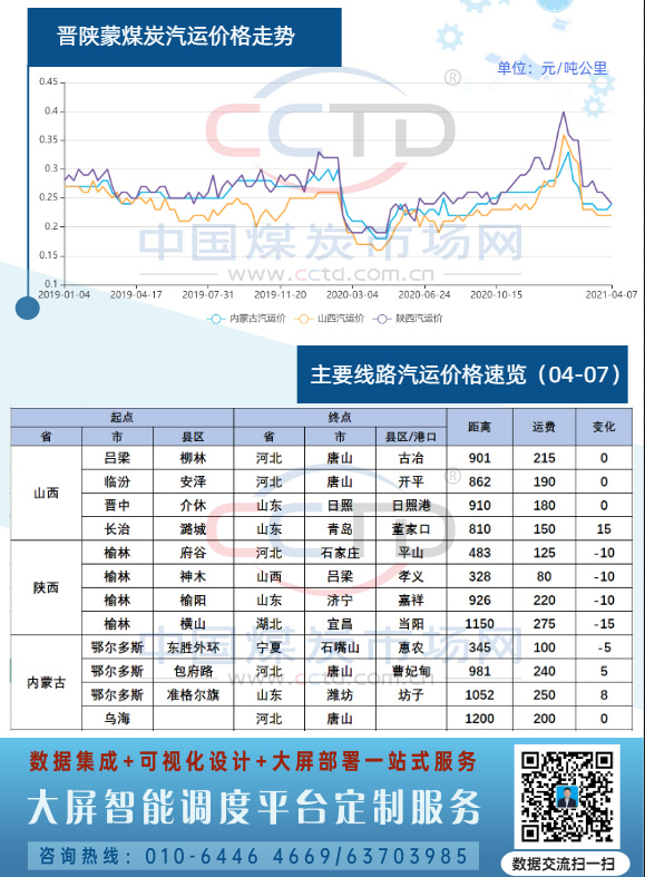 图:晋陕蒙煤炭汽运价格速览(20210407)