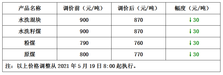 «内蒙古高家梁煤矿5月18日下调煤炭价格20-30元/吨 内蒙古国源矿业5月19日下调精煤价格20元/吨»