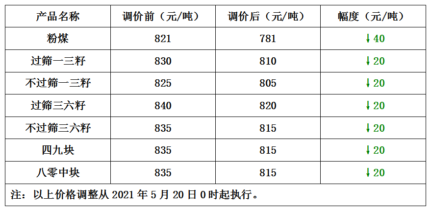 «内蒙古昊达煤矿5月19日下调煤价10-30元/吨 内蒙古马泰壕煤矿5月20日下调煤价30-60元/吨»
