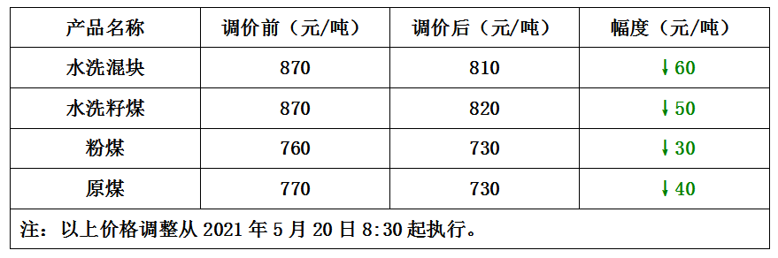 内蒙古马泰壕煤矿5月20日下调煤价30-60元/吨