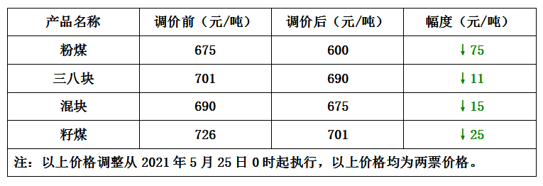 内蒙古赛蒙特尔煤矿5月25日起下调煤价11-75元/吨