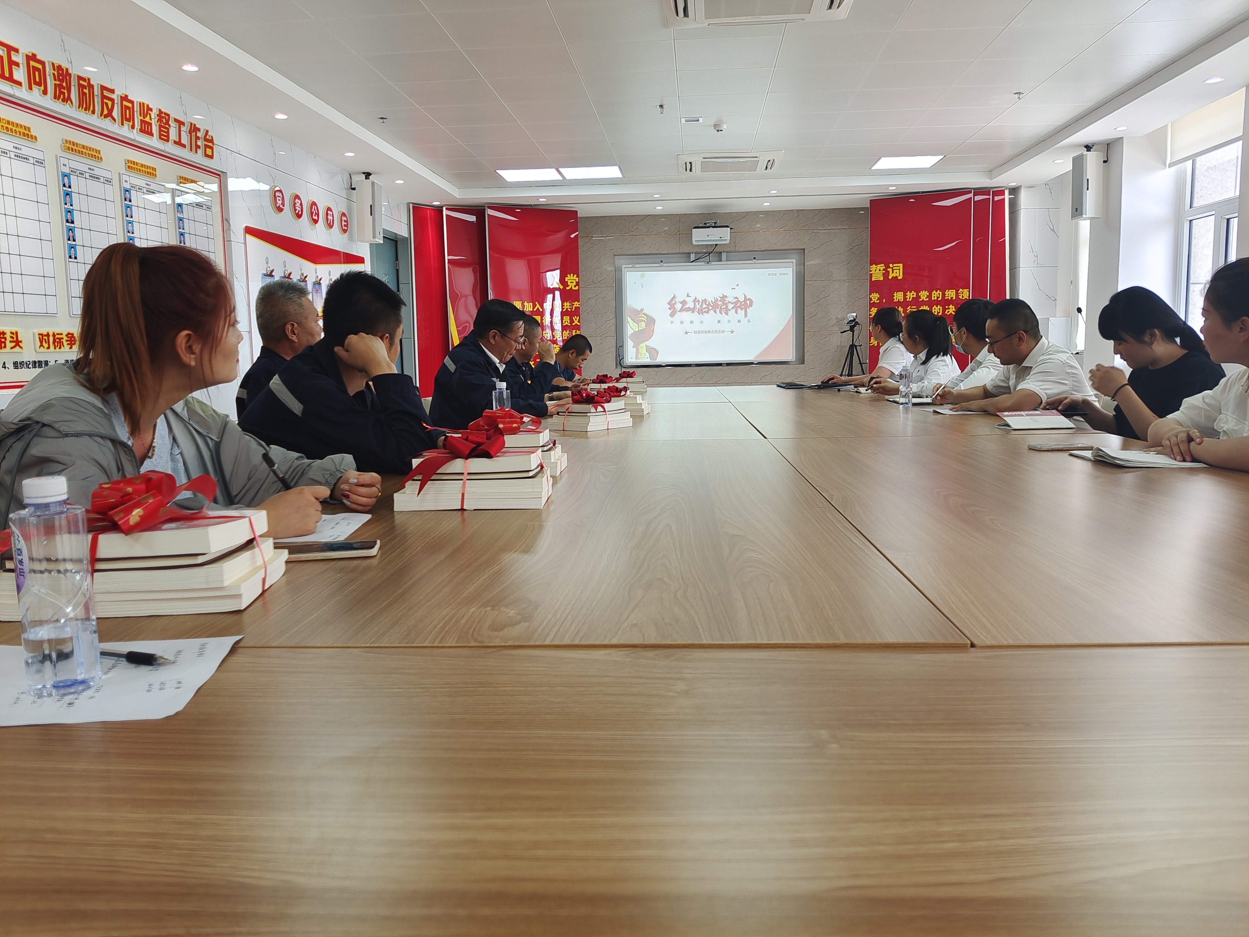 活动开始,全体党员对着党旗庄严起誓,更加坚定了党员理想信念、激发了责任感和使命感,为提升组织的凝聚力、向心力和战斗力注入了红色力量。学好党史是每一个党员的自觉和责任。接着大家学习了追本溯源的“红船精神”党课,并且观看了《党史故事100讲》之一大首聚开天辟地专题纪录片,带领党员们回到了1921年7月的上海和嘉兴南湖,瞻仰了中国共产党的诞生。通过对这段发展历程的深入了解,党员们更加坚定了理想信念,增强了使命感和责任感,提升了党员干部党史知识的学习的积极性。从中汲取了源源不绝的红色能量。